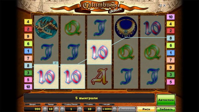 Бонусы игрового аппарата Колумбус Делюкс